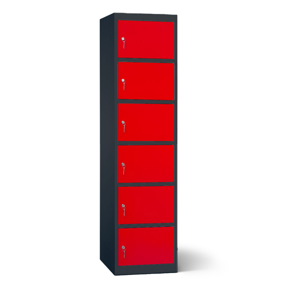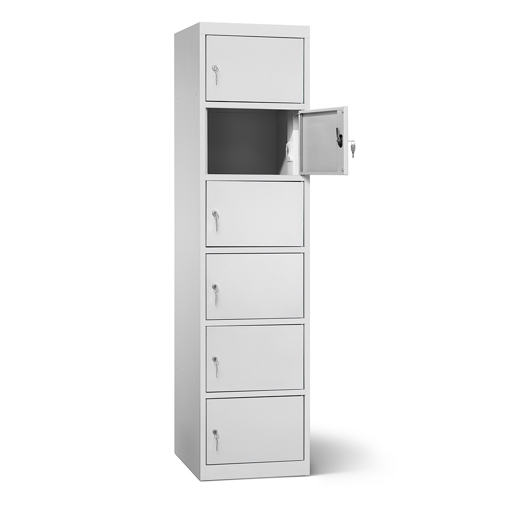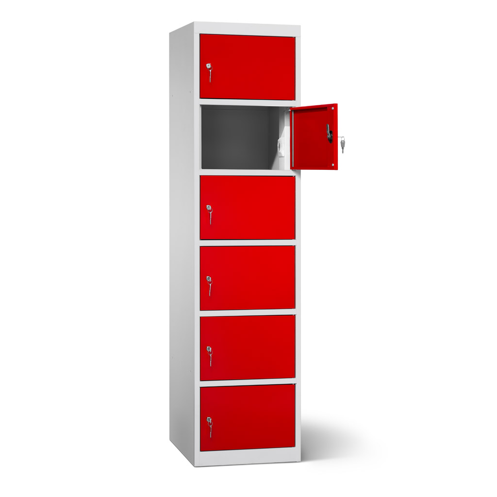 | Eigenschaften | Artikelmass (HxBxT): ca. 180 x 45 x 50 cm, Fachmaß (HxBxT): ca. 28 x 45 x 50 cm, lichtes Fachdurchlassmass (HxBxT): ca. 26 x 37 x 48 cm, Elektrifizierung: 220V/ 16A Steckdose pro Fach, 1 Netzkabel pro Schrank (2,5 m), Korpus: mit Lüftungslöchern, Türen: durch Aufkantungen verstärkt, an stabilen Edelstahlbolzen befestigt, Öffnungswinkel 180°, Zertifizierungen: entspricht EU-Richtlinien 2001/95/EG, 2014/35/EU, CE-Kennzeichnung. |