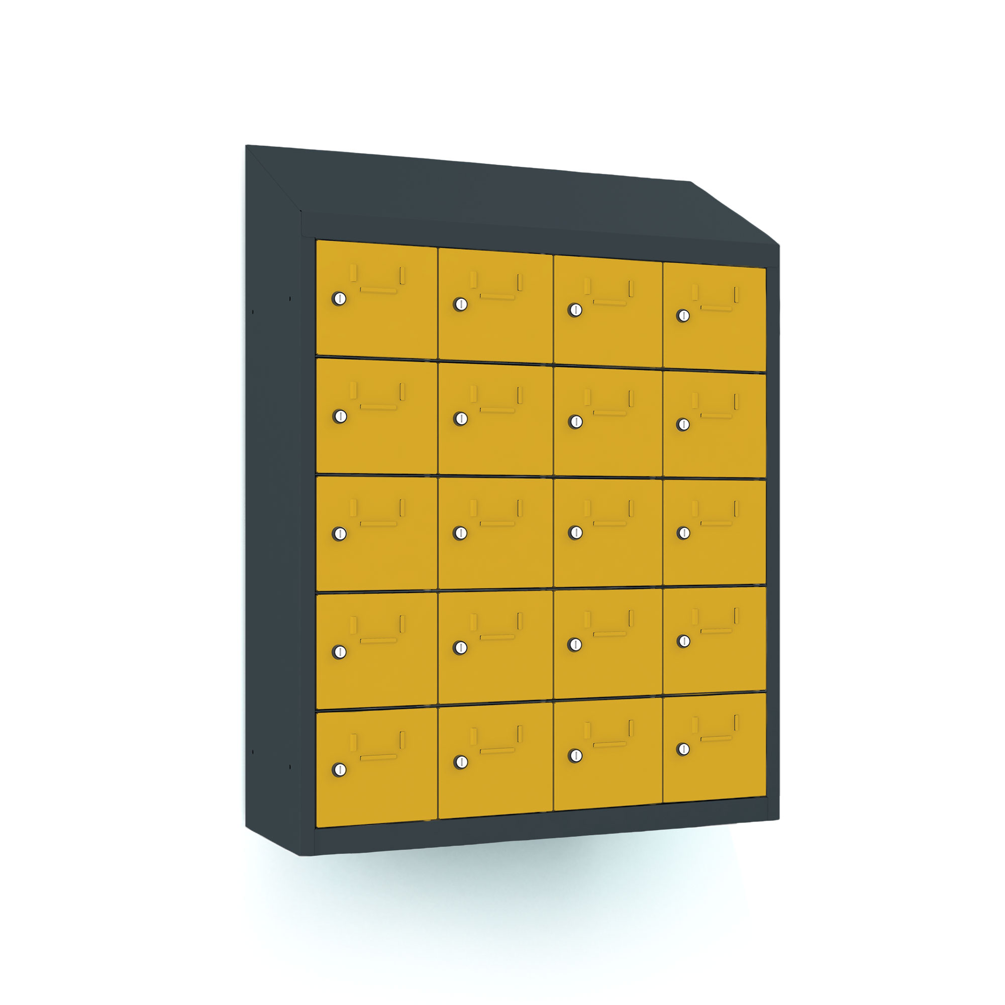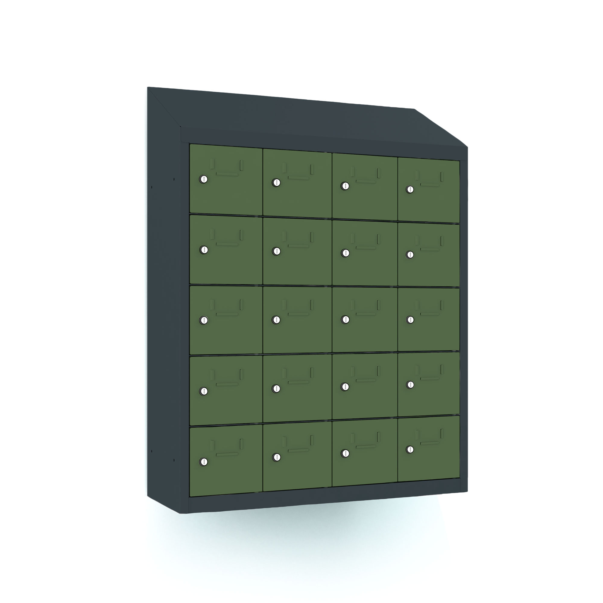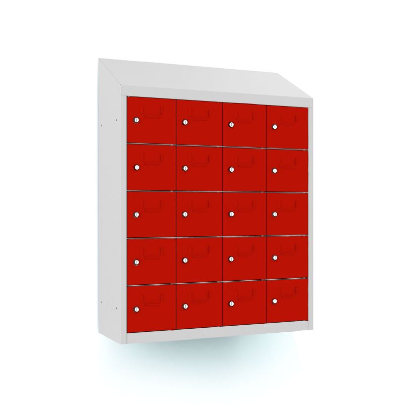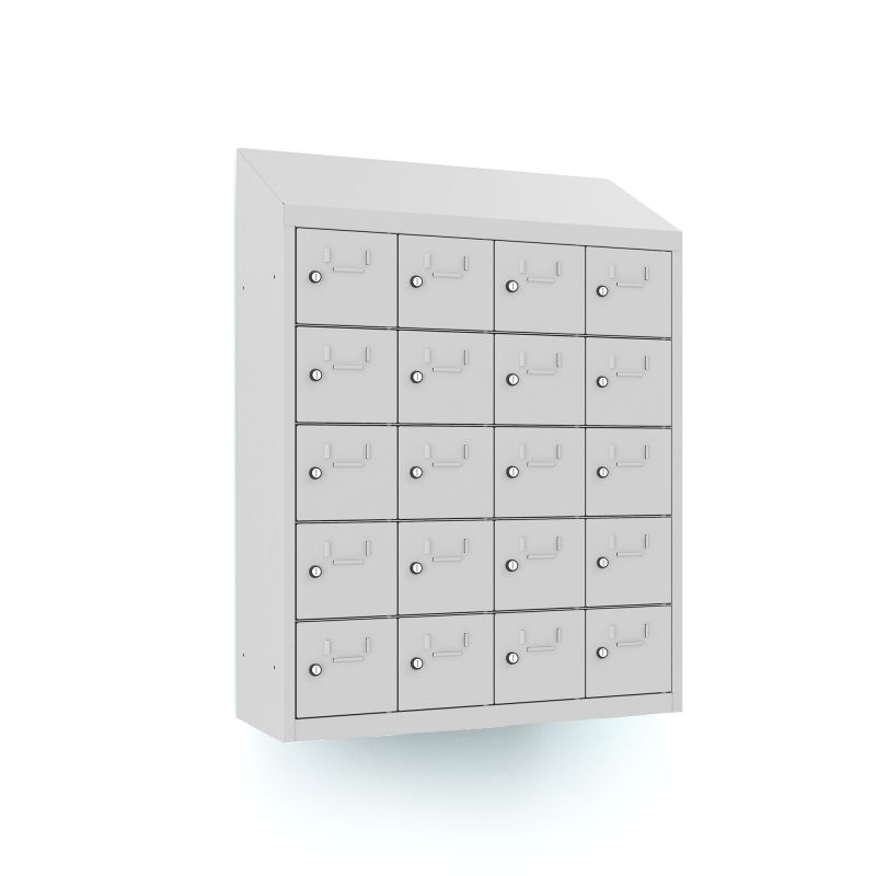 | Eigenschaften | Artikelmass (HxBxT): ca. 109 x 81 x 30cm, Abteilbreite: 20cm, Gewicht: 41kg, Ausführung: 0,6 mm Blechstärke, Ausstattung: Türöffnungswinkel 110 Grad, Fachinnemasse (BxHxT) 15,4 x 16 x29 cm, mit Schrägdach und Etikettenrahmen, Schrankhöhe 94 cm + 15 cm Schrägdach |