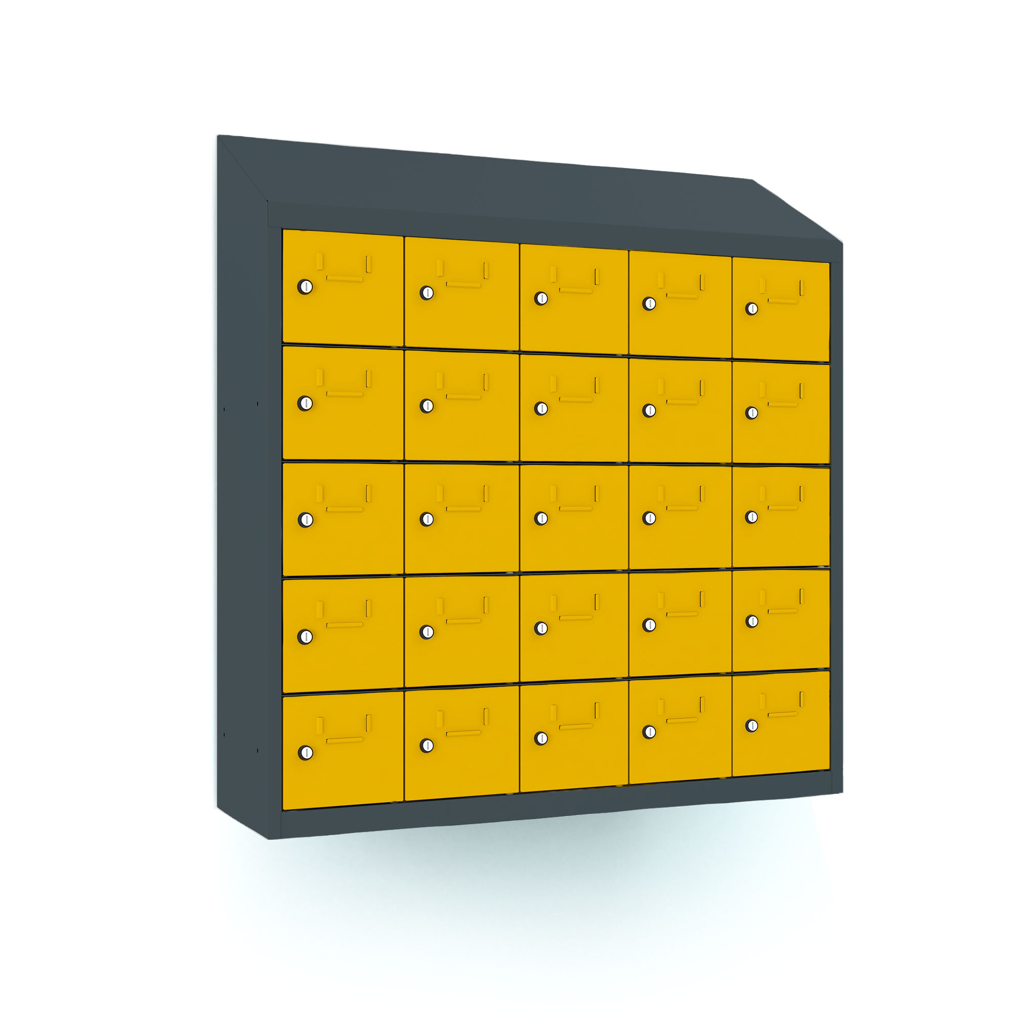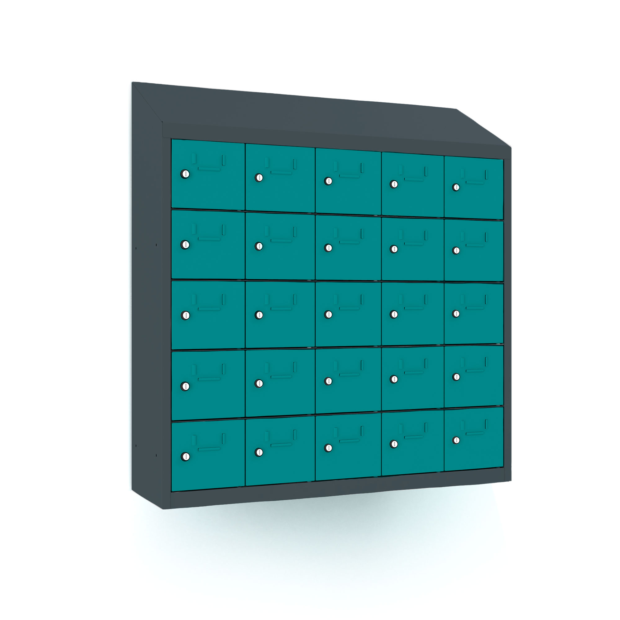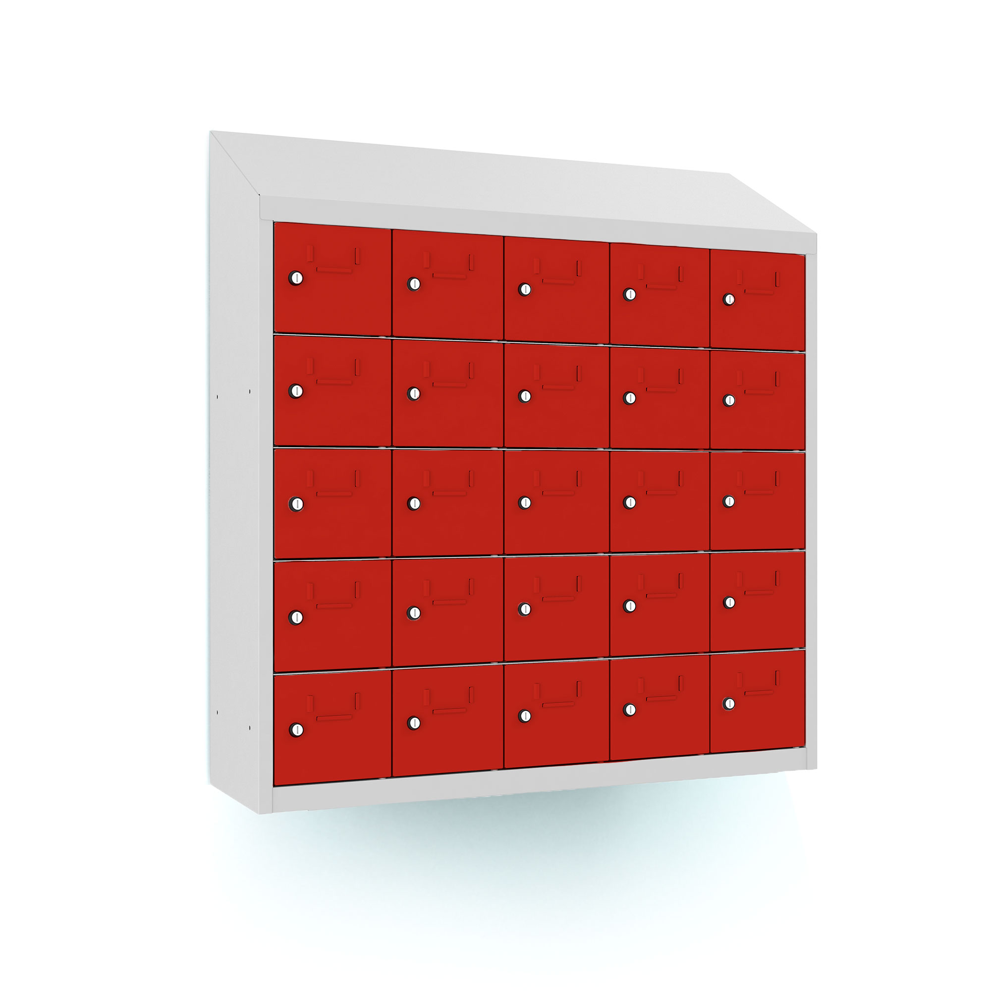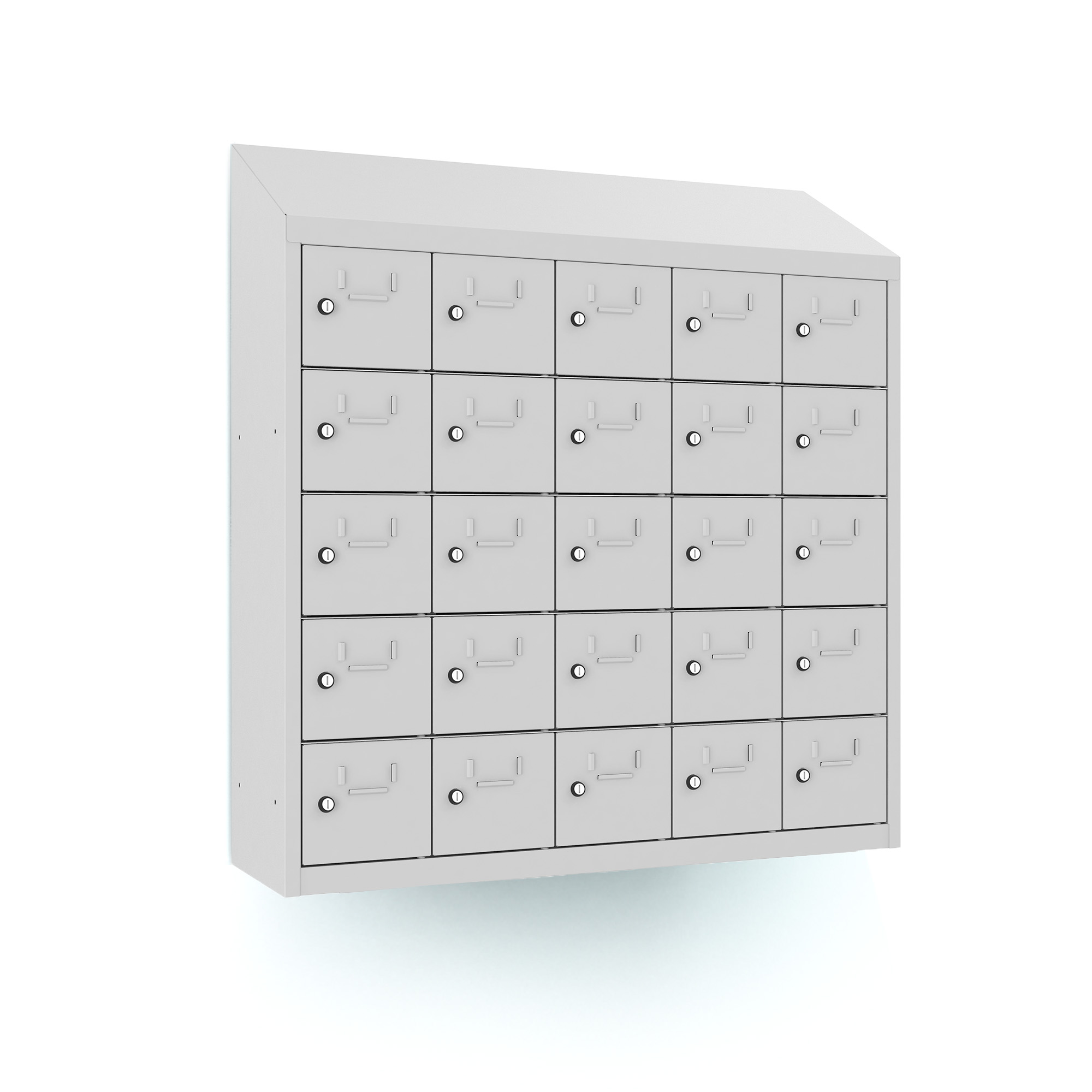 | Eigenschaften | Artikelmass (HxBxT): ca. 109 x 100 x 30cm, Abteilbreite: 20cm, Gewicht: 50kg, Ausführung: 0,6 mm Blechstärke, Ausstattung: Türöffnungswinkel 110 Grad, Fachinnemasse (BxHxT) 15,4 x 16 x29 cm, mit Schrägdach und Etikettenrahmen, Schrankhöhe 94 cm + 15 cm Schrägdach |