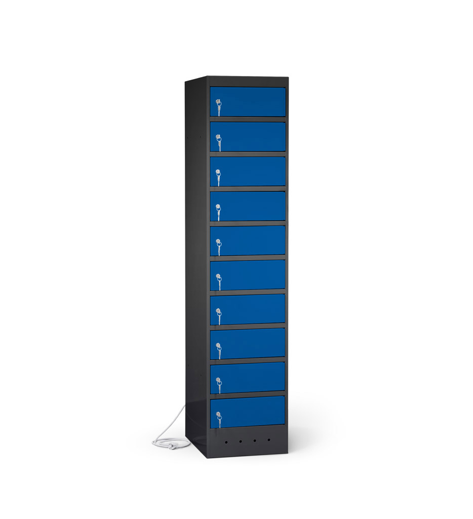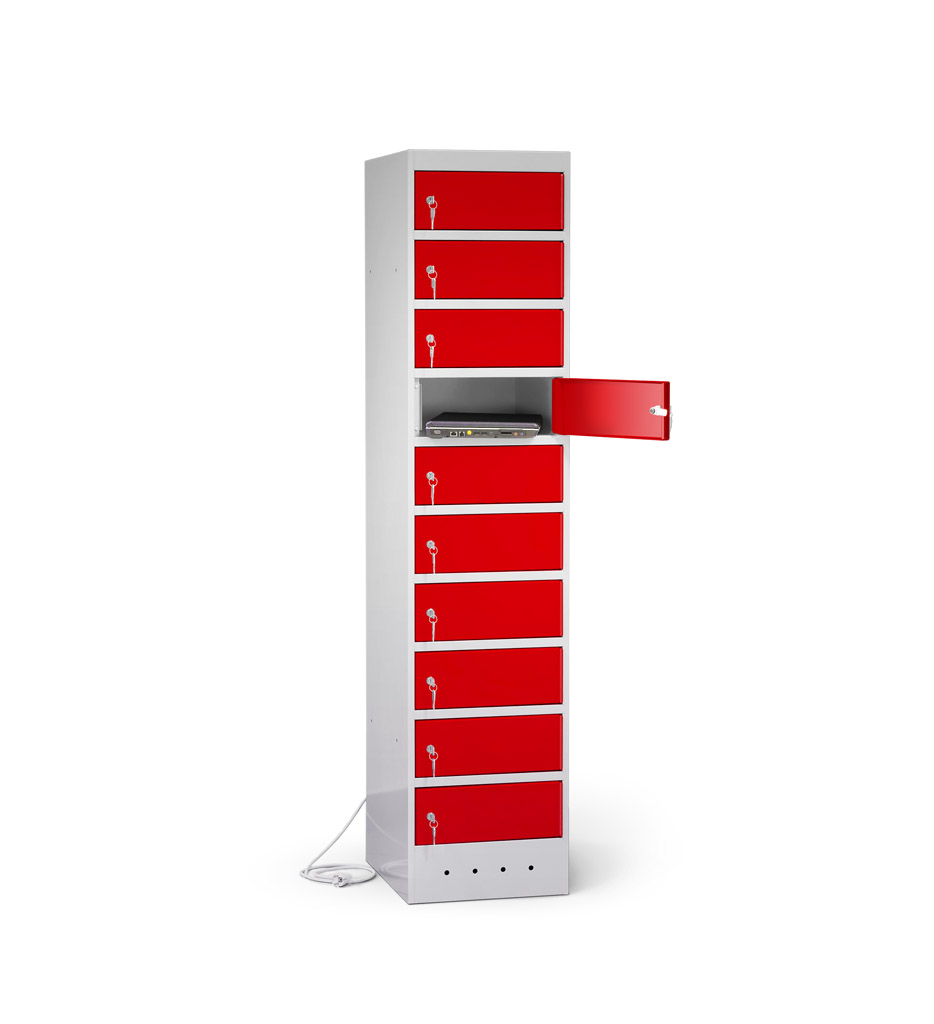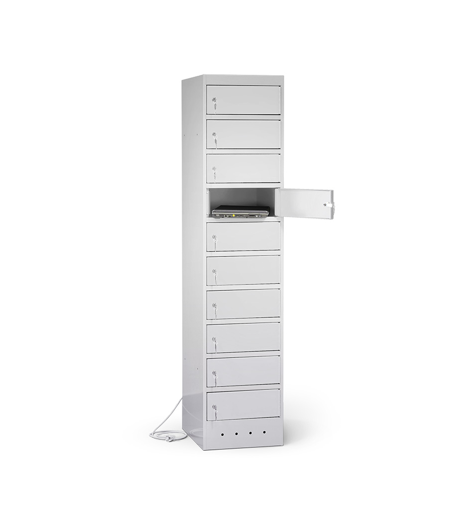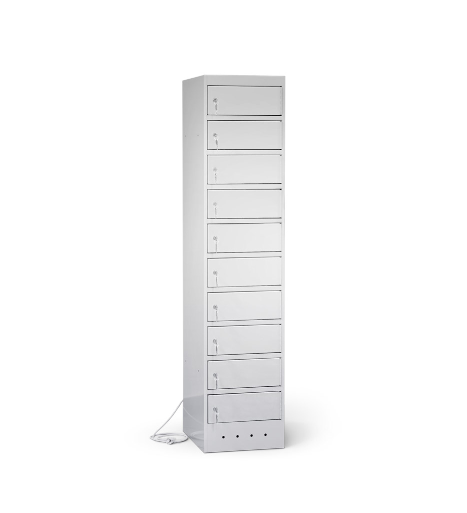 | Eigenschaften | Artikelmass (HxBxT): ca. 180 x 40 x 50 cm, Artikelgewicht: ca. 75,0 kg, Fachmass (HxBxT): ca. 16 x 40 x 50 cm, lichtes Fachdurchlassmass (HxBxT): ca. 14 x 32 x 47 cm Elektrifizierung: 220V/ 16A Typ 12 CH-Steckdose pro Fach, 1 Netzkabel pro Schrank (2,5 m) Korpus: mit Lüftungslöchern, Türen: durch Aufkantungen verstärkt, an stabilen Edelstahlbolzen befestigt, Öffnungswinkel 180° Zertifizierungen: entspricht EU-Richtlinien 2001/95/EG, 2014/35/EU, CE-Kennzeichnung |