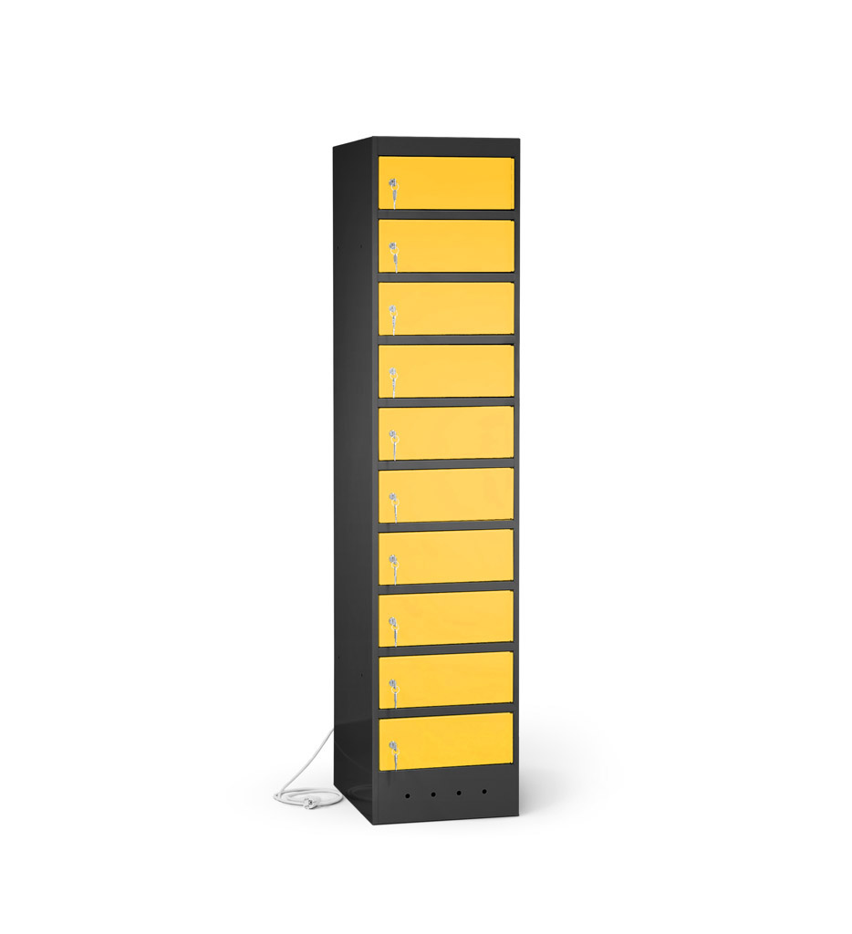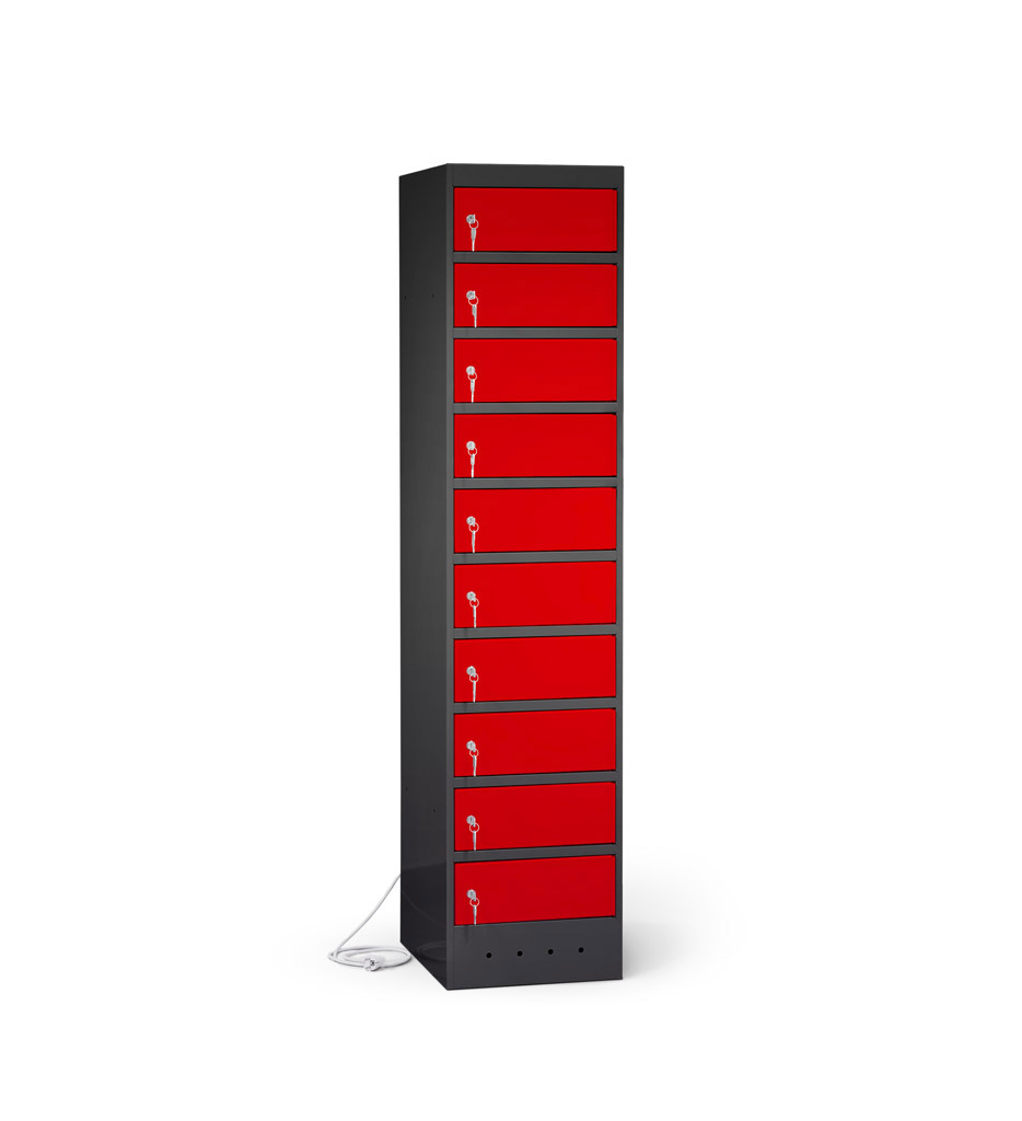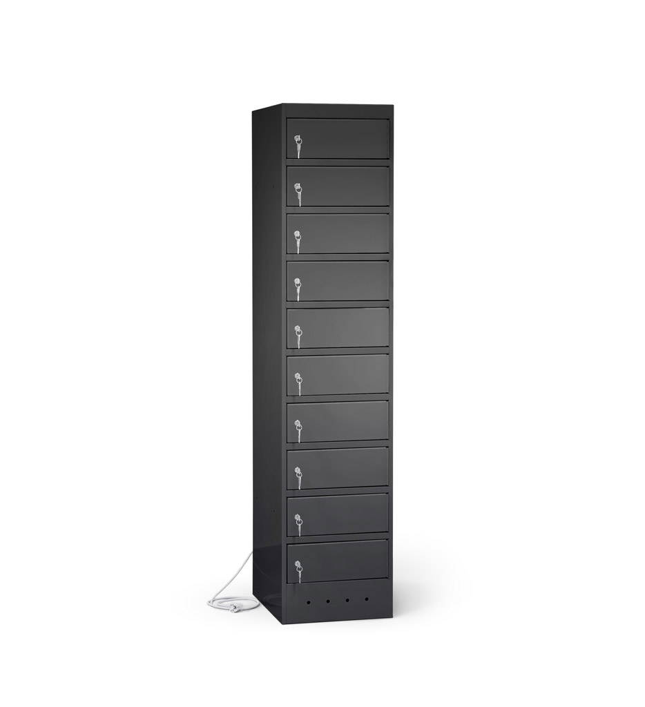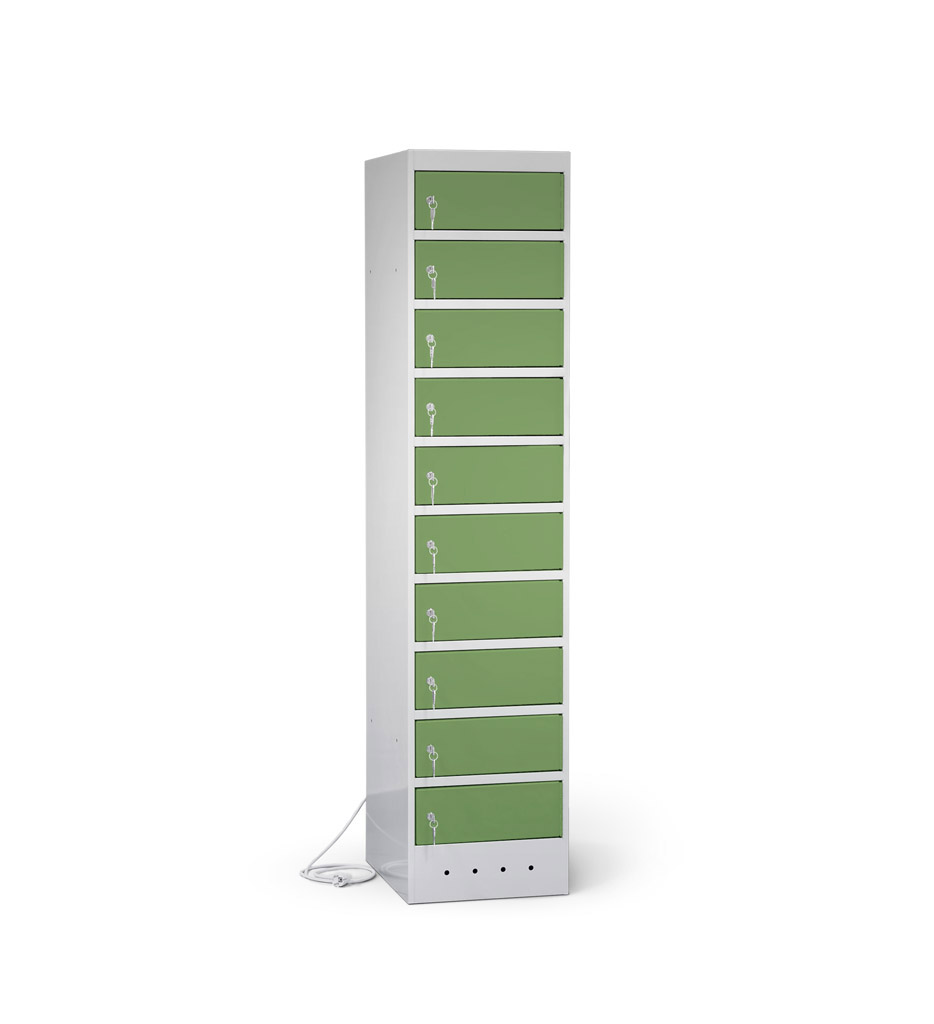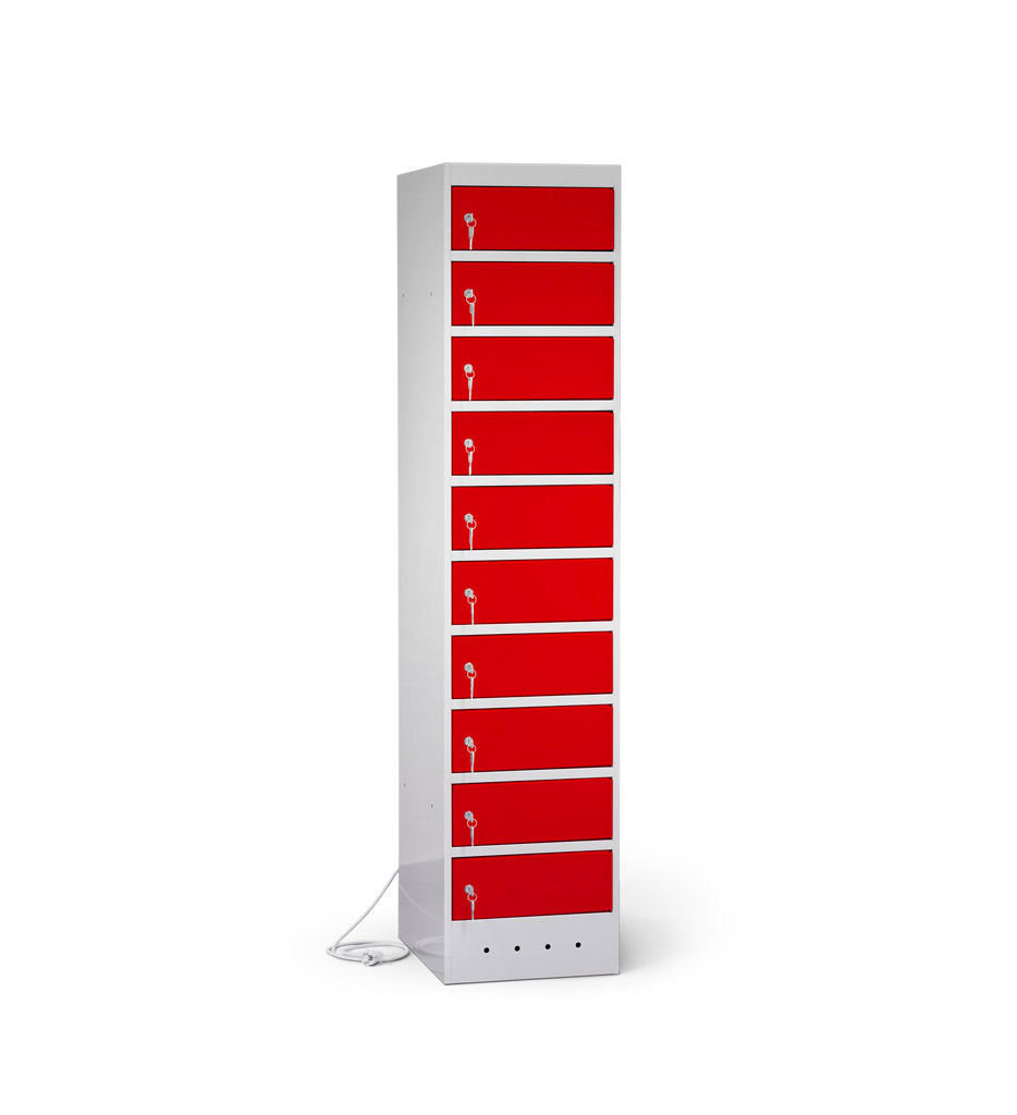 | Eigenschaften | Artikelmass (HxBxT): ca. 180 x 40 x 50 cm, Artikelgewicht: ca. 75,0 kg, Fachmass (HxBxT): ca. 16 x 40 x 50 cm, lichtes Fachdurchlassmass (HxBxT): ca. 14 x 32 x 47 cm Elektrifizierung: 220V/ 16A Typ 12 CH-Steckdose pro Fach, 1 Netzkabel pro Schrank (2,5 m) Korpus: mit Lüftungslöchern, Türen: durch Aufkantungen verstärkt, an stabilen Edelstahlbolzen befestigt, Öffnungswinkel 180° Zertifizierungen: entspricht EU-Richtlinien 2001/95/EG, 2014/35/EU, CE-Kennzeichnung |